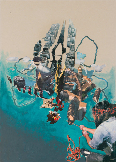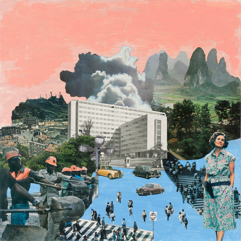 In seinen Collagen sind Architektur und Natur wiederkehrende Themen, die er durch die Kombination von Vergangenem und Gegenwärtigem auf spezielle Weise erkundet. Die Entstehung einer neuen Collage kann durch eine spezifische Idee oder die Inspiration durch ein einzelnes Bild eingeleitet werden – ein Prozess, der die spontane und intuitive Seite seines künstlerischen Ansatzes unterstreicht.
