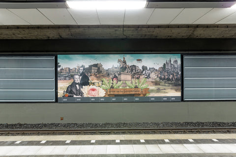 Dennis Hüsers hat sich seit 2014 ganz der Collagenkunst verschrieben, inspiriert von einem Projekt, das nicht nur seine Karriere, sondern auch seinen künstlerischen Ausdruck nachhaltig prägte. Die Gestaltung der U-Bahnstation Waterloo in Hannover, ein Prozess, der 2010 begann und sich über mehrere Jahre erstreckte, stellte ihn vor die Herausforderung, die vielschichtige Geschichte der Stadt auf 16 großen Wandtafeln visuell zu erzählen. Diese Erfahrung leitete ihn zur Collage, einem Medium, das die Verbindung von komplexen Geschichten und historischen Momenten in einer kunstvollen Synthese ermöglicht. Gleichzeitig entfachte das Projekt seine Faszination für Stadtgeschichten, die er bis heute weiterträgt und die hier in Form von Stadtcollagen ausgelebt wird.